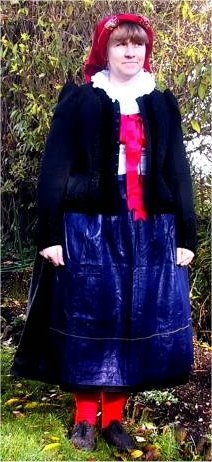 Abbildung: Trachtenberaterin Traudi Höfer im Sonntagsgewand ("Suntegwente") der verheirateten Frauen (eMail: harald.hoeferdebitel.net)
