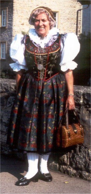 Abbildung: Trachtenberaterin Hermine Bender in Karlsbader Tracht (Foto: Erich Rudel)